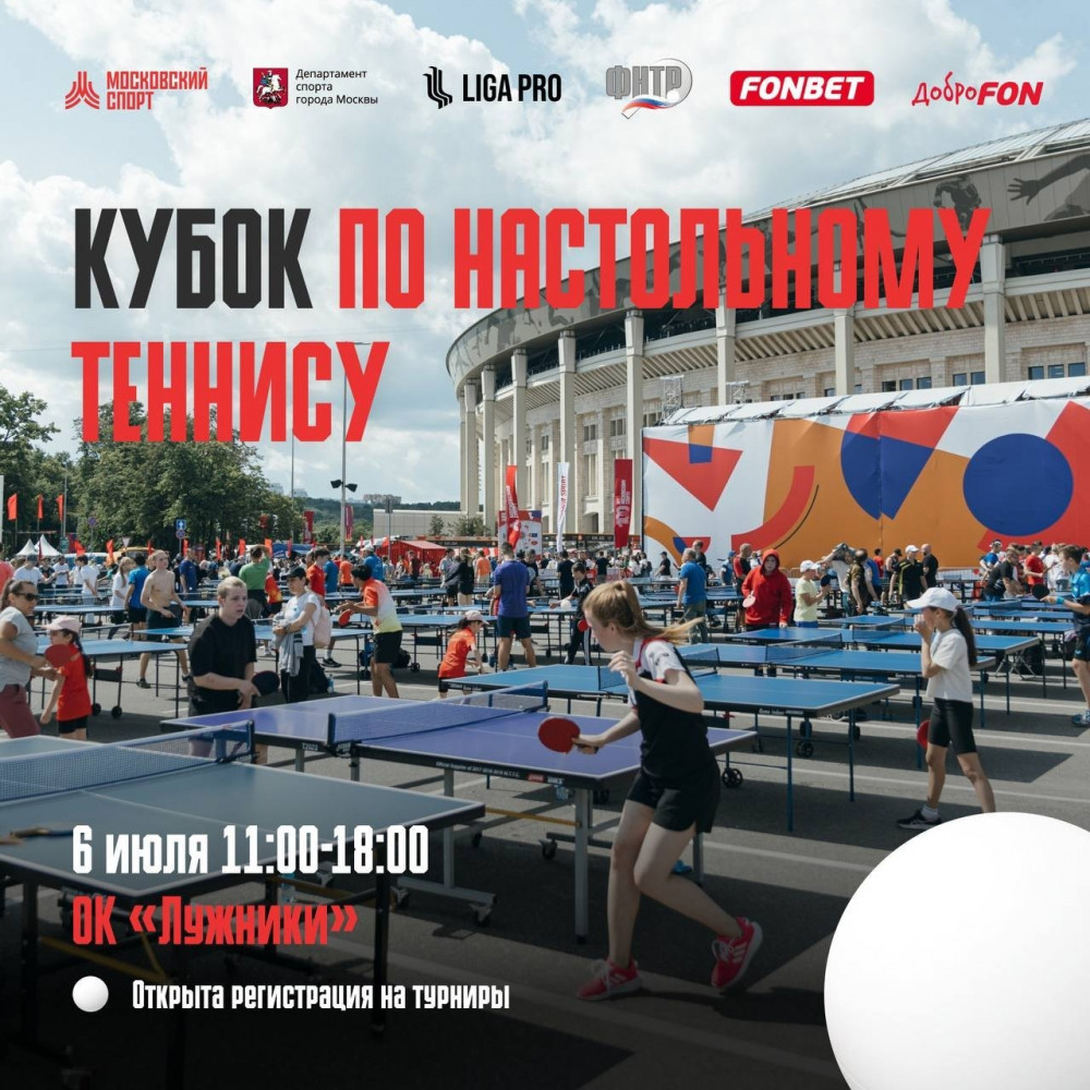 6 июля 2024 года на территории Олимпийского комплекса «Лужники» состоится масштабное спортивное событие «Кубок по настольному теннису» (площадка между БСА и аквакомплексом).